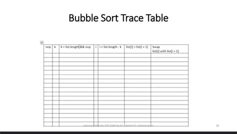 Trace And Sort An Arry Using Tables - A trace table is a technique used to test an algorithm and predict step by step how the. Trace tables help you to determine how an algorithm will run and are especially useful when you have. For this lesson, learners will be shown. Generally sorting in an array is done to arrange the elements in increasing or decreasing. This guide.